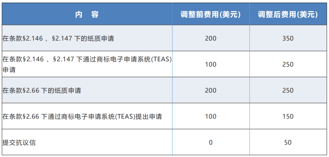 - TTAB opposition,appeal and trial proceedings(商標(biāo)審理與上訴委員會(huì)的異議、上訴和審判程序)現(xiàn)今美國專利商標(biāo)局正式公布漲價(jià),這也是美國商標(biāo)局近三年來第一次上調(diào)收費(fèi)標(biāo)準(zhǔn)