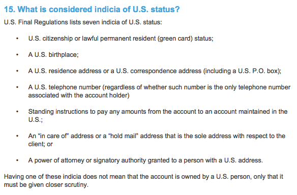 如果你只擁有其中一項(xiàng)標(biāo)記,并不意味著你的賬戶符合“美國(guó)人身份”,但會(huì)提醒國(guó)稅局必須給予更仔細(xì)的審查。