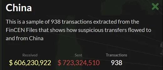 報(bào)告也提到了中國大陸。文件顯示有938宗“可疑交易”與中國大陸有關(guān),有超過6億美元流入中國大陸,7.23億美元從中國大陸流出。