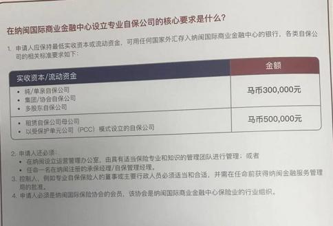附:納閩國(guó)際商業(yè)金融中心設(shè)立專業(yè)自保公司的核心要求: