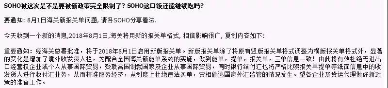 6月21日,海關(guān)總署發(fā)布了調(diào)整報關(guān)單填制規(guī)范的通知,涉及到出口報關(guān)單的多項重要調(diào)整。有網(wǎng)友在福步外貿(mào)論壇上發(fā)布了一篇帖子,說SOHO 這種模式是不是走不下去了?