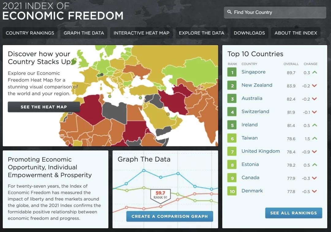 2021全球最自由經(jīng)濟(jì)體新加坡排第一